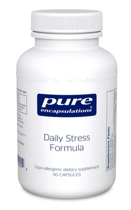 This broad-spectrum supplement was designed to promote mental relaxation and moderate the effects of occasional stress. Eleutherococcus senticosus, or eleuthero, is used as an adaptogen to help bolster adrenal function and stress resistance. Like ashwagandha, it is highly revered for promoting vitality and immune defense. Chamomile and lemon balm provide traditional support for calmness and relaxation. B vitamins and magnesium are included to help counter the effects of stress on healthy nutritional status. B-complex vitamins have also been associated with healthy neurotransmitter function and energy metabolism. Vitamin B5 is especially important for boosting healthy adrenal gland function to strengthen the body’s ability to withstand stress. Vitamin C provides important support for neutralizing free radicals generated by the stress response.‡