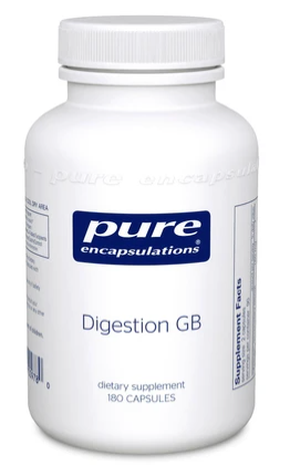 Digestion GB contains gallbladder digestive enzymes, bile salts, taurine and herbal extracts to promote healthy gallbladder function with optimal support for fat, carbohydrate and protein digestion.‡